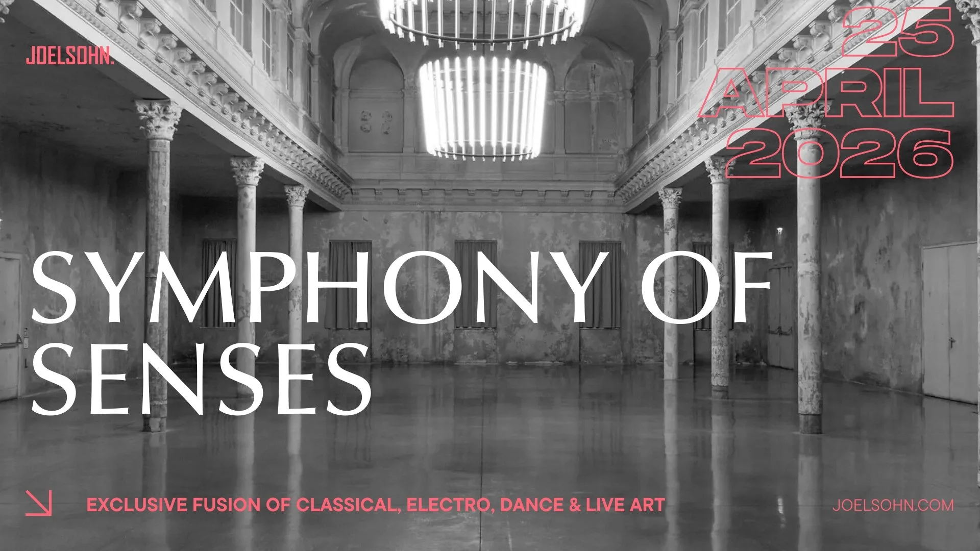 Our next major project, SYMPHONY OF SENSES, reflects this vision. Developed under the creative philosophy of JOELSOHN., the format reimagines the classical concert as a multi-sensory, atmospheric experience — breaking traditional boundaries and inviting audiences to engage with music in new ways.